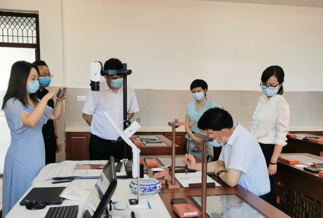 9月10日上午,湖北省當(dāng)陽市委書記劉傳鋼、當(dāng)陽市教育局局長曾祥卿一行到訪當(dāng)陽市新建學(xué)校玉陽中學(xué)熊家山校區(qū),在教師節(jié)來臨之際看望和慰問學(xué)校教師,并考察了學(xué)校的設(shè)施環(huán)境,其中重點(diǎn)考察體驗(yàn)了華文眾合智慧書法教室。據(jù)悉,這間智慧書法教室是當(dāng)陽市首間智慧書法教室,于9月1日開學(xué)日正式投入使用。