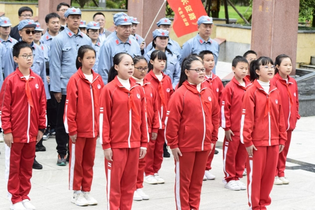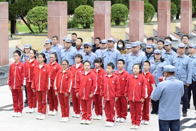 在紅軍飛奪瀘定橋紀(jì)念碑前,詩書長征路活動首發(fā)團(tuán)全部團(tuán)員莊嚴(yán)肅立,瀘定縣瀘定橋小學(xué)的12名小學(xué)生在德育處主任獻(xiàn)德仙的指引下整齊劃一,慷慨激昂地朗誦《七律·長征》等紅軍長征詩詞。