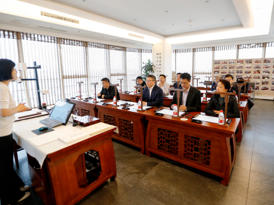 華文眾合董事長向大鳳向劉學亮一行報告了關于企業文化、市場規模、產品研發成果等情況,劉學亮一行親身體驗智慧書法教室中的交互式數字臨摹臺及多維互動系統功能,肯定了華文眾合在書法科技創新和數字技術賦能傳統文化傳承所取得的創新發展成果。