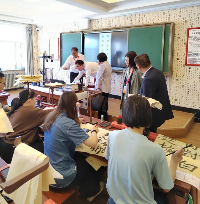 沈陽(yáng)師范大學(xué)原副校長(zhǎng)關(guān)松林教授、華東師范大學(xué)亞洲數(shù)學(xué)教育中心主任范良火、長(zhǎng)春師范大學(xué)數(shù)學(xué)學(xué)院院長(zhǎng)劉仁云;烏蘭察布副市長(zhǎng)雷昆,烏蘭察布市教育局副局長(zhǎng)王冬妮蒞臨集寧師范學(xué)院書法教室參觀考察。黨委書記朱玉東、校長(zhǎng)劉春、副校長(zhǎng)李景杰、文學(xué)院院長(zhǎng)郭鵬、書法老師郝青山陪同參觀。