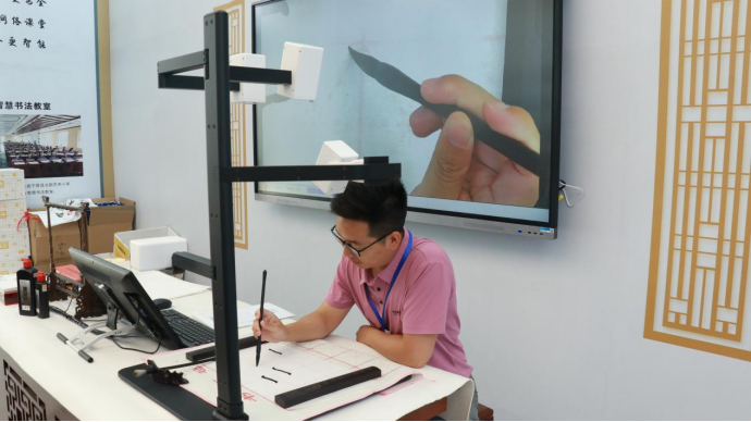 本次展示會,華文眾合帶來兩大新科技——Ai智能評價功能、筆尖跟蹤技術。華文眾合第8代智慧書法教室運用人工智能技術,突破師資短缺、課程體系缺位等限制,填補傳統書法教育短板。
