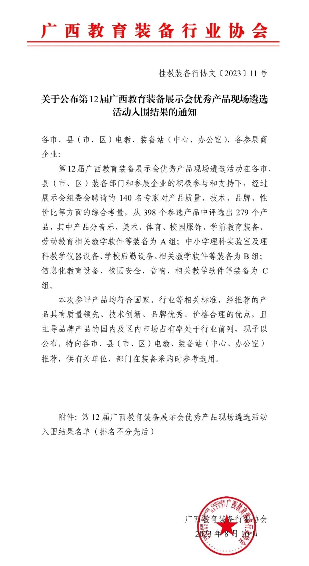 第12屆廣西教育裝備展示會優秀產品推薦目錄評選結果公布!