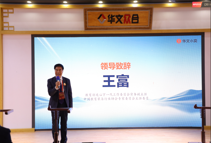 在展會現(xiàn)場,華文眾合特別邀請重磅嘉賓—教育部關(guān)心下一代工作委員會常務(wù)副主任、中國教育裝備行業(yè)協(xié)會專家委員會主任委員王富先生登臺完整背誦了《滕王閣序》與《蘭亭集序》兩篇經(jīng)典古文,其流暢且鏗鏘的表達(dá)引發(fā)全場駐足聆聽;背誦結(jié)束后,王富主任還圍繞《滕王閣序》背后的歷史典故展開精彩分享,在場觀眾全都沉浸于經(jīng)典文化的魅力之中。現(xiàn)場氣氛熱烈、掌聲雷動,將展會推向高潮。