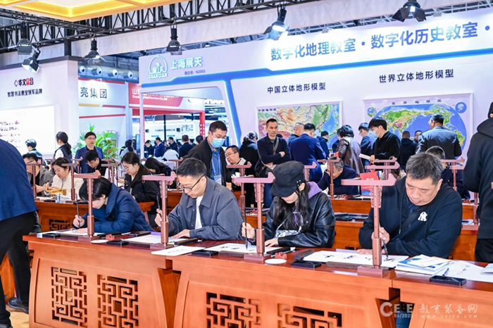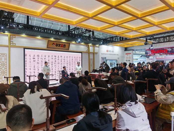 除了華文小奕機(jī)器人,華文眾合展位的核心產(chǎn)品第九代智慧書法教室和智慧粉筆教室同樣備受矚目,其傳統(tǒng)與科技的完美結(jié)合,引得教育工作者、高校領(lǐng)導(dǎo)及對書法感興趣的社會各界人士紛紛駐足參觀體驗。