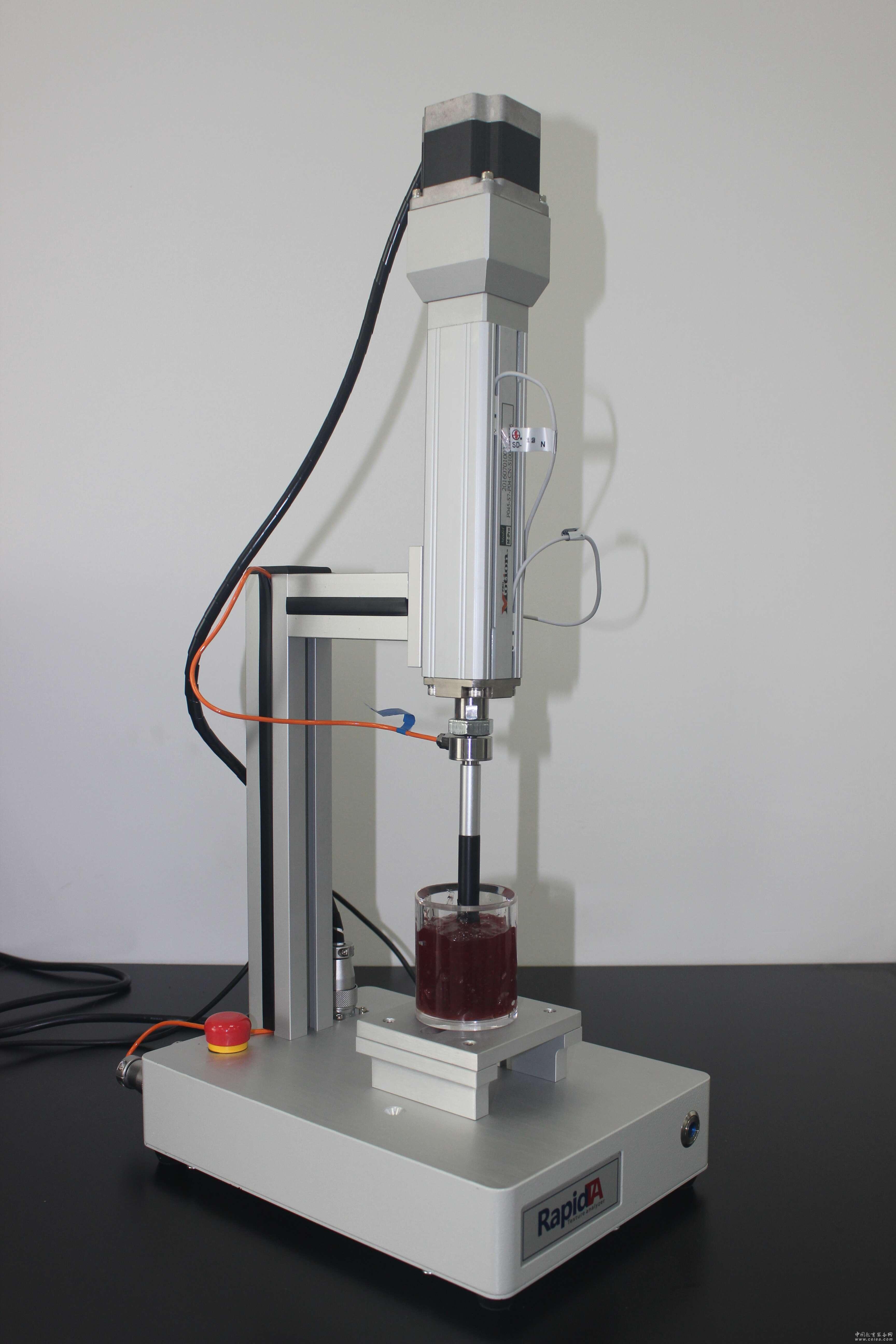 產品詳細介紹一 、凝膠強度測定儀簡介 該款儀器可用于測試果凍、蛋白、明膠、卡拉膠、瓊脂、瓊膠、樹脂、水凝膠、油田用聚合物等凝膠的凝膠強度。符合國際標準方法(ISO 9665 Adhesives-Animal glues-Method of sampling and testing) 測定膠體強度、國家標準GB 28304-2012可得然膠凝膠強度測定和國家標準GB6783-2013明膠凝凍強度測定。 這款儀器操作簡便、無需復雜培訓、一鍵操作,圖譜和結果實時自動顯示。 二、凝膠強度測定儀技術參數 1 力量感應元:0-5g,可以使用第三方標準砝碼進行計量驗證和校正,有0.5kg,1kg,10kg,20kg,30kg荷重感測組件可選。 2 速度:0.50mm/s或者1.00mm/s 3 專用軟件:中英文隨時切換,測試過程中,軟件帶有實時顯示框,檢測過程數據可以實時顯示,用戶可直接觀察檢測圖譜變化 4 測試結果:被測膠體在受到力作用下瞬間破碎時所受到的最大力來計算凝膠的凝膠強度。測試結果自動顯示,結果可保存為excel等office辦公文件。 5 儀器保護功能:緊急停止功能、上下極限控制功能。