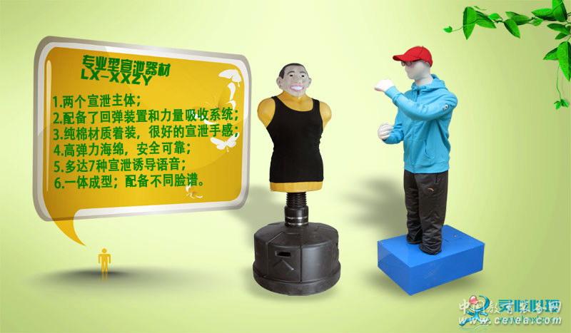 產品描述: 1、仿真成人版宣泄人1個 :身高:180cm , 可擊打身高:170cm ,底座尺寸:60*50*20CM長*寬*高 產品技術參數: 1-1.產品設計:宣泄人手臂姿勢可以任意調節,擺出不同的被擊打姿勢,很好的引導來訪者的宣泄欲望, 手指采用五指分開設計,可握拳,可出掌。一體成型,采用進口高分子緩沖材料,增加了耐用性, 一次性模具成型。電路部分采用了最新的振動感應技術,可感受到極小的震動,4.5V安全電壓供電, 并能發出七種以上不同的真人趣味發聲。 1-2.底座:采用注沙型鋼制底座,用于穩定宣泄人主體。 1-3.宣泄人材料:進口高分子緩沖材料。