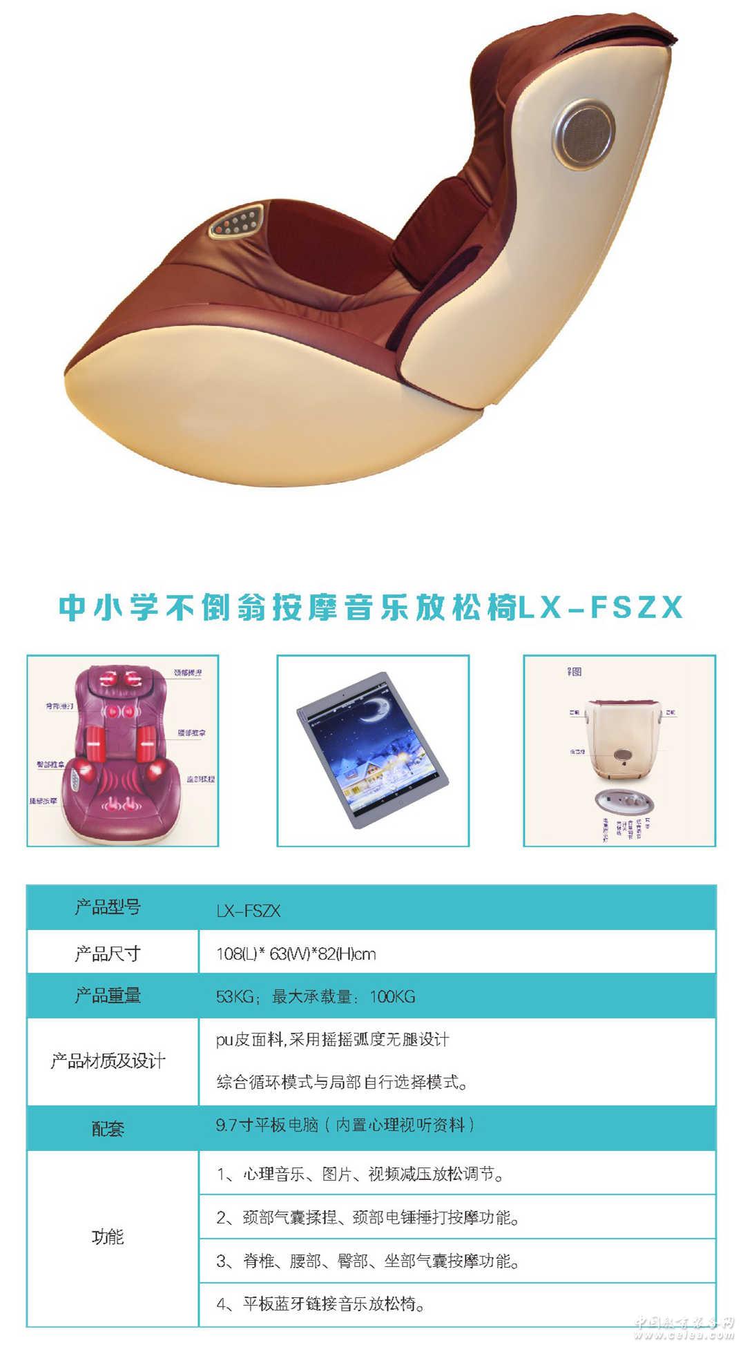 產(chǎn)品詳細(xì)介紹中小學(xué)心理輔導(dǎo)室設(shè)計(jì)方案,中小學(xué)音樂放松椅廠家心理產(chǎn)品器材,特殊學(xué)校心理 產(chǎn)品描述: 1.不倒翁式音樂按摩椅: a.功率:60瓦 b.凈重:38KG c.氣囊:20個(gè) d.電磁閥:8個(gè) e.面料:pu椅子采用搖搖弧度無腿設(shè)計(jì)。