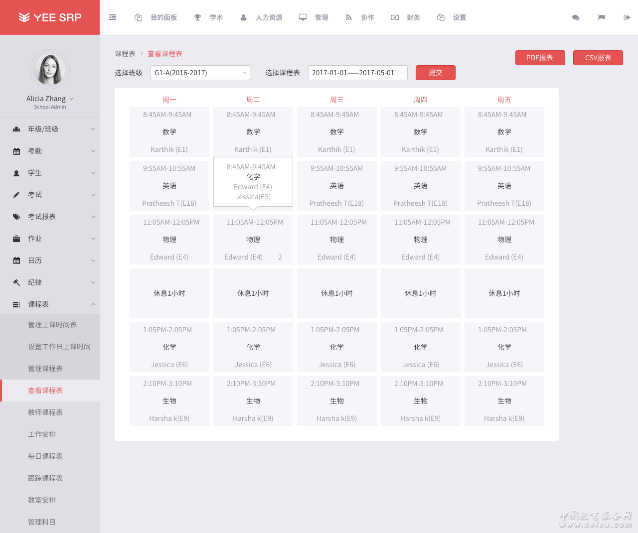 產(chǎn)品詳細介紹  課程表模塊: 適應走班制、選修課,不同的學生和不同老師對應自己相應的課表。