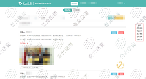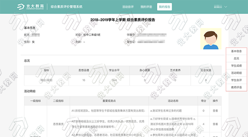 光大教育響應國家政策,滿足教育主管部門、學校的切實需求,推出“綜合素質評價系統”,旨在為其提供綜合素質評價工作一體化管理平臺。系統通過對學生的“思想品德、學業水平、身心健康、藝術素養和社會實踐”五大維度發展狀況進行觀察、記錄、評價,提升教育教學質量,促進學生全面健康成長。