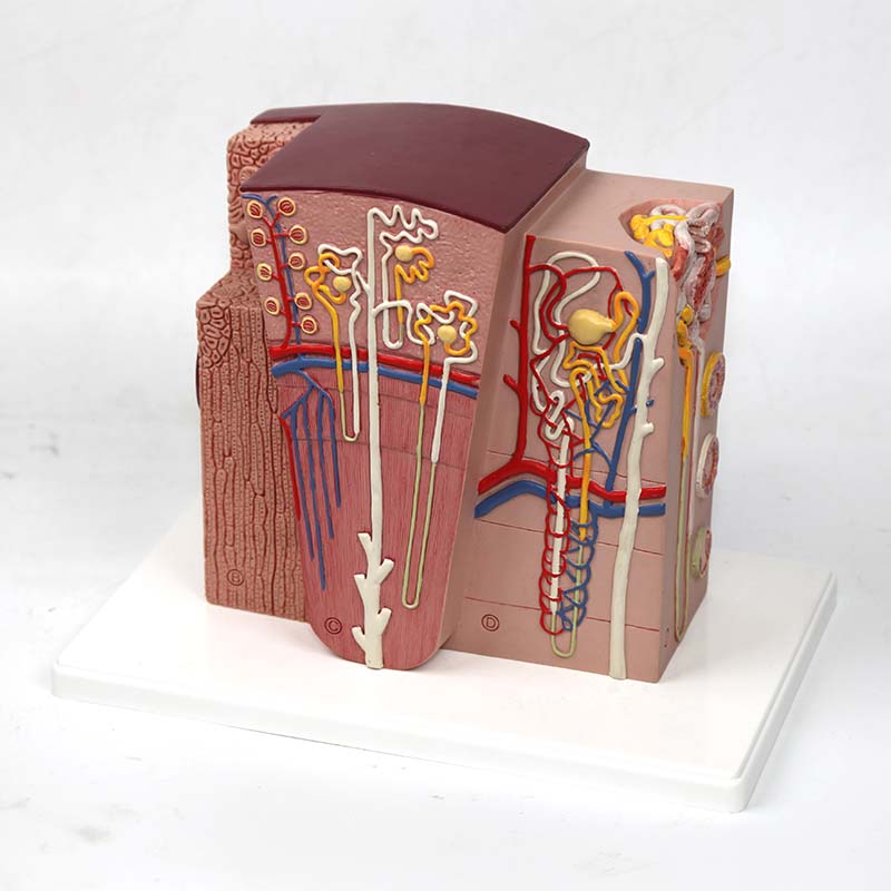 腎微觀模型將腎臟內(nèi)部微細(xì)結(jié)構(gòu)放大展示,清晰呈現(xiàn)腎小球、腎小囊、腎小管、毛細(xì)血管網(wǎng)等腎單位核心結(jié)構(gòu),直觀演示血液濾過(guò)、重吸收等尿液形成過(guò)程。結(jié)構(gòu)精細(xì)、示意清晰,適用于中小學(xué)及高中生物、醫(yī)學(xué)基礎(chǔ)教學(xué)演示。