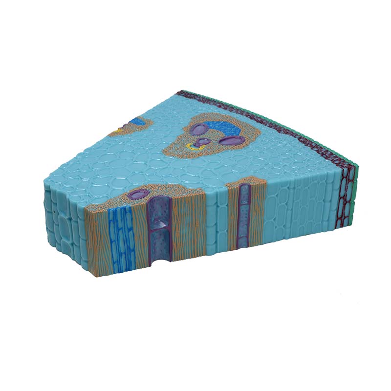 本模型展示單子葉植物莖的橫切面結構,清晰表現表皮、基本組織及散生分布的維管束等典型特征,直觀體現無形成層、莖不增粗的結構特點,便于理解單子葉植物莖的構造與功能,適用于植物學課堂教學與實驗演示。