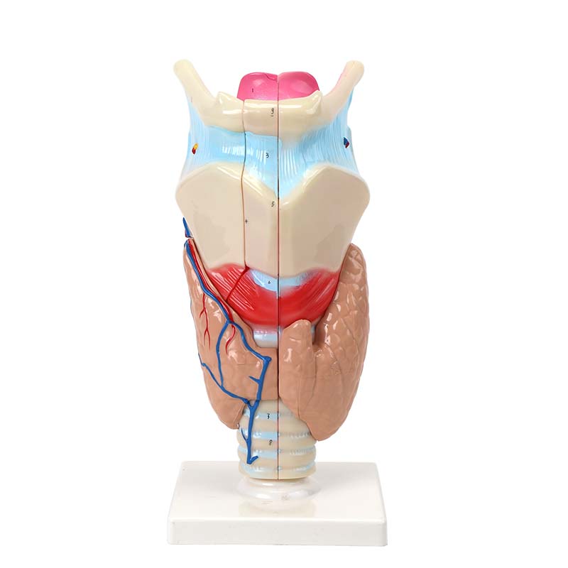 本模型精細展示人體喉部的完整解剖結構,清晰呈現甲狀軟骨、環狀軟骨、會厭軟骨、聲帶、喉室等關鍵部位,直觀體現咽喉的呼吸與發聲功能結構,結構標準、標識清晰,適用于中小學生物課堂、醫學教學及耳鼻喉科普演示。