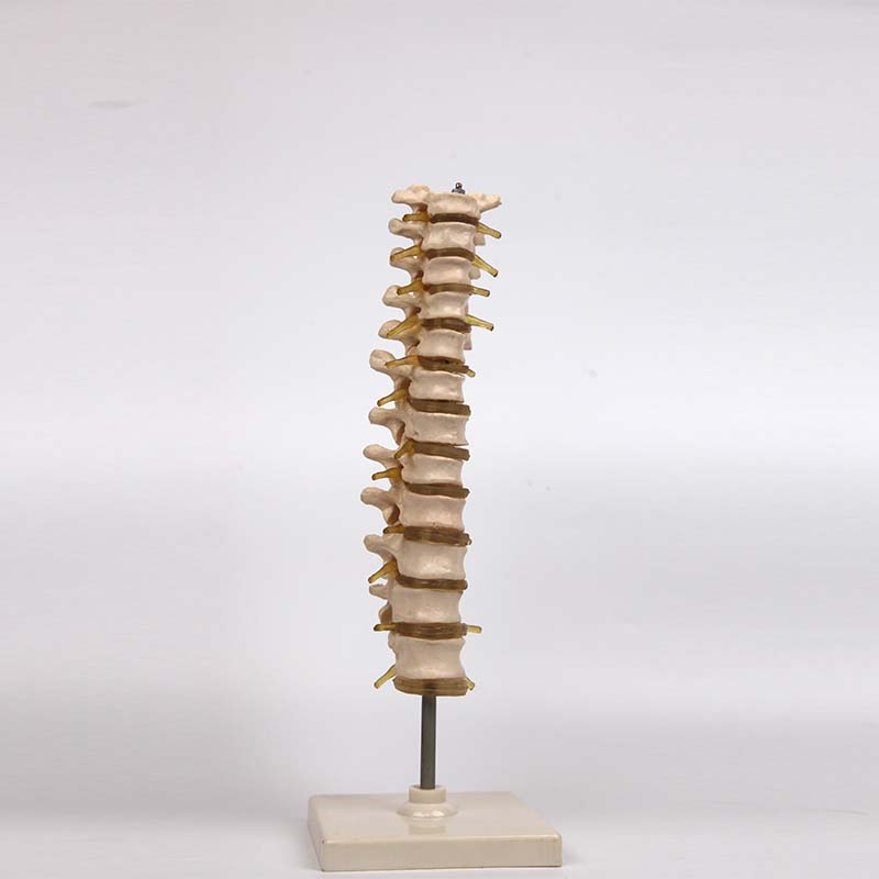 本模型為完整 12 節胸椎脊柱段,依次排列,椎體、椎弓、椎孔、橫突、棘突結構標準清晰。直觀展示胸椎形態、脊柱生理結構及連接方式,便于講解脊柱骨骼組成、胸廓連接結構。結實直觀,適用于初中生物骨骼系統課堂教學、實驗演示、醫學解剖入門科普。