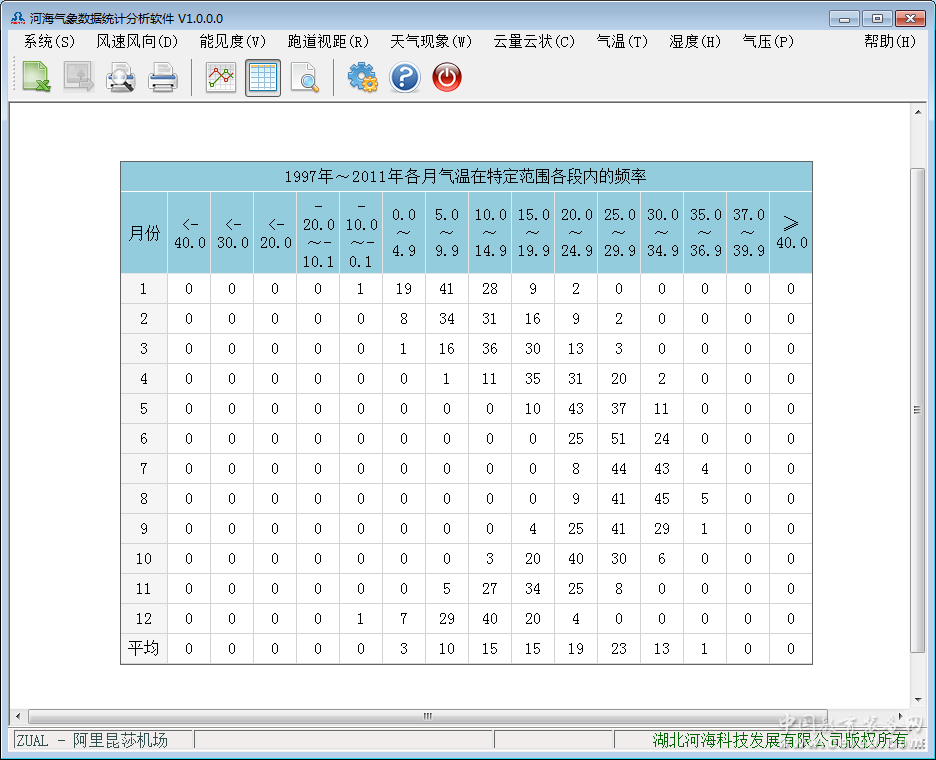 產(chǎn)品詳細(xì)介紹民航機場氣候志是在整理和分析多年氣象資料的基礎(chǔ)上做出的統(tǒng)計和總結(jié)機場區(qū)域氣候狀況和變化情況的重要資料,該資料能夠總結(jié)機場氣候變化規(guī)律,可以為機場建設(shè)、生產(chǎn)運行的氣象決策服務(wù)提供重要依據(jù)。按照國際民用航空公約附件3《國際航空氣象服務(wù)》的要求,凡機場具有5年的氣象觀測資料,都應(yīng)進行氣候志的整編,但這項工作人工處理的效率較低。河海機場氣象志數(shù)據(jù)處理軟件,可實現(xiàn)各類氣象要素的自動統(tǒng)計和輸出, 統(tǒng)計方法和輸出格式完全符合《中華人民共和國民用航空行業(yè)標(biāo)準(zhǔn)》的氣候資料整編與分析規(guī)范,是民航機場氣象業(yè)務(wù)部門整編及分析氣候資料的強大工具。