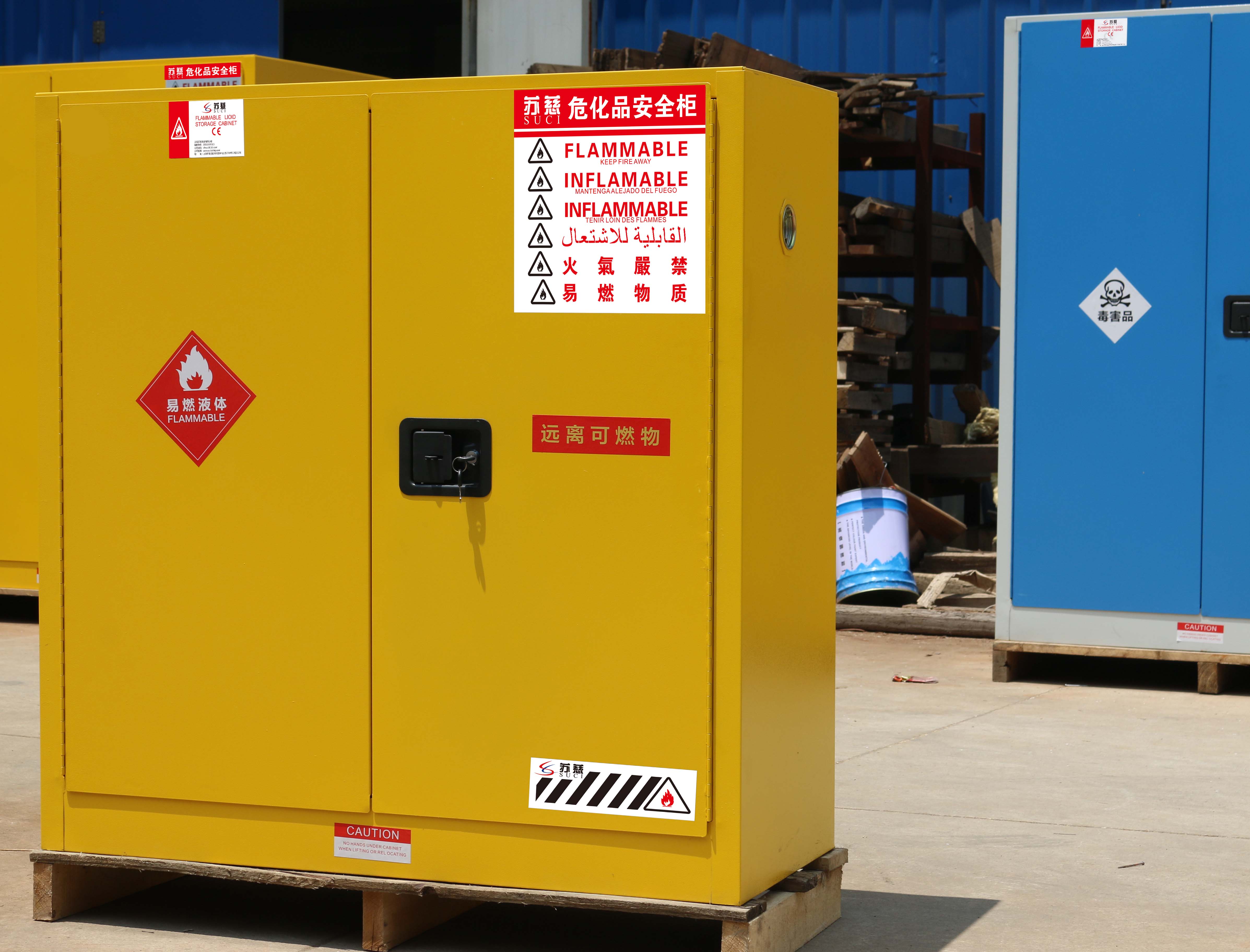 ◆超高性能的蘇慈(SUCI)安全柜達到OSHA29CFR1910.106(美國職業安全健康管理局)標準、符合NFPA CODEE30(美國國家消防協會)第30條的相關標準要求用于規范存儲易燃、易爆、腐蝕性液體及危險化學品; ◆化學品安全柜全系列產品已獲得歐盟CE認證,敬請放心購買; ◆全部雙層鋼板構造,二層鋼板之間相隔有38mm絕緣層; ◆雙層優質鋼板經過點焊接,使用壽命延長,防火性能更好; ◆優質三點聯動式門鎖和鋅合金鎖舍,輕松自如啟閉180度的柜門配有雙鑰匙; ◆可選配一把掛鎖,實現雙人雙鎖的安全管理要求; ◆5cm高的防漏液槽使意外流出的液體不外溢; ◆專業規范的警示標簽顯而易見; ◆裝有防閉火裝置的雙透氣孔分別位于柜身左下角、右上角; ◆獨有的超強承重鍍鋅層板可在每11cm層檔上下自由調節; ◆柜子內外都噴涂環氧樹脂,耐腐蝕性更佳; ◆嚴格按照OSHA規范,柜身設有靜電接地傳導接口,方便連接接地導線,將靜電荷導入大地,降低靜電火花造成火災風險; ◆可根據不同客戶的具體要求進行非標定制,滿足您的實際需求; ◆柜體頂部、后背設計成氣體壓力釋放處,緩解發生爆炸時壓力向四周噴濺; ◆采用手動開門(自閉門)設計,為確保安全柜防火性能,雙開門的門縫不大于3Mm,且門縫上下大小一致; ◆三點式子彈頭式鋅合金鎖舌,輕松閉合柜門; |