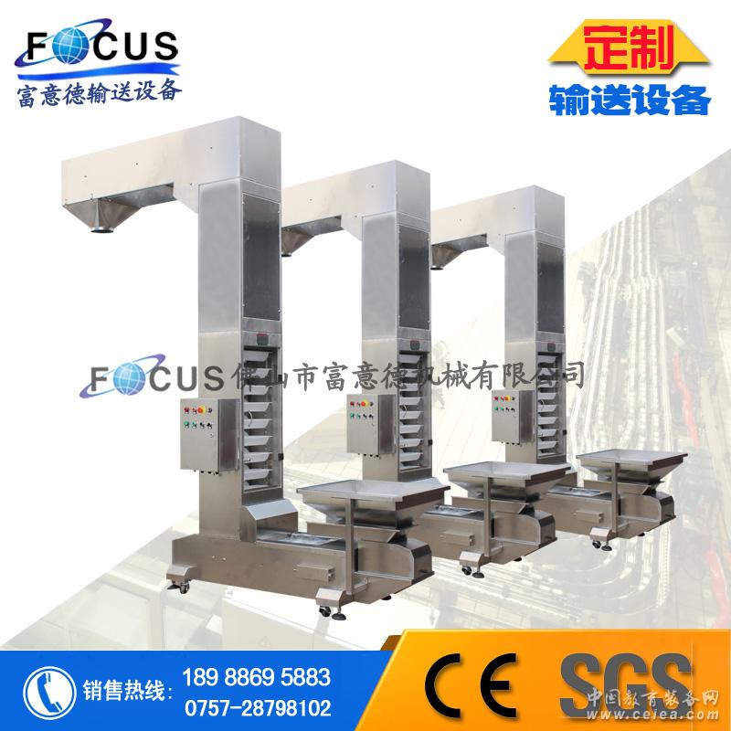 產品詳細介紹    物料提升機的機體主要形式:斗式提升機、轉斗式提升機主要組成形式有Z字型、C字型,一字水平型等。其工作原理及特點相同,用于水平—垂直—水平輸送顆粒狀及小塊狀物料。其結構緊湊、占地面積小、提升高度大、密封性能好、物料無破損。佛山富意德機械廠家專業生產并銷售供應輸送設備,有10年的生產經驗和強大的技術售后服務團隊。