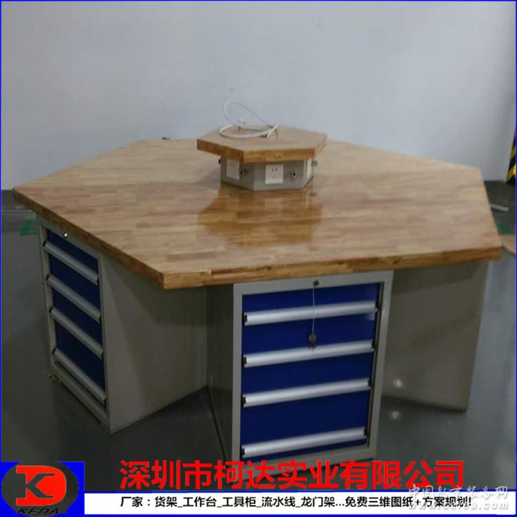 7。六角鉗工臺的邊長寬度和臺面高度多少比較合理? 按照人機工程學原理,標準高度為800mm,單邊長1.2米,直徑2.4米,適合中國工人的身高和工作效率。