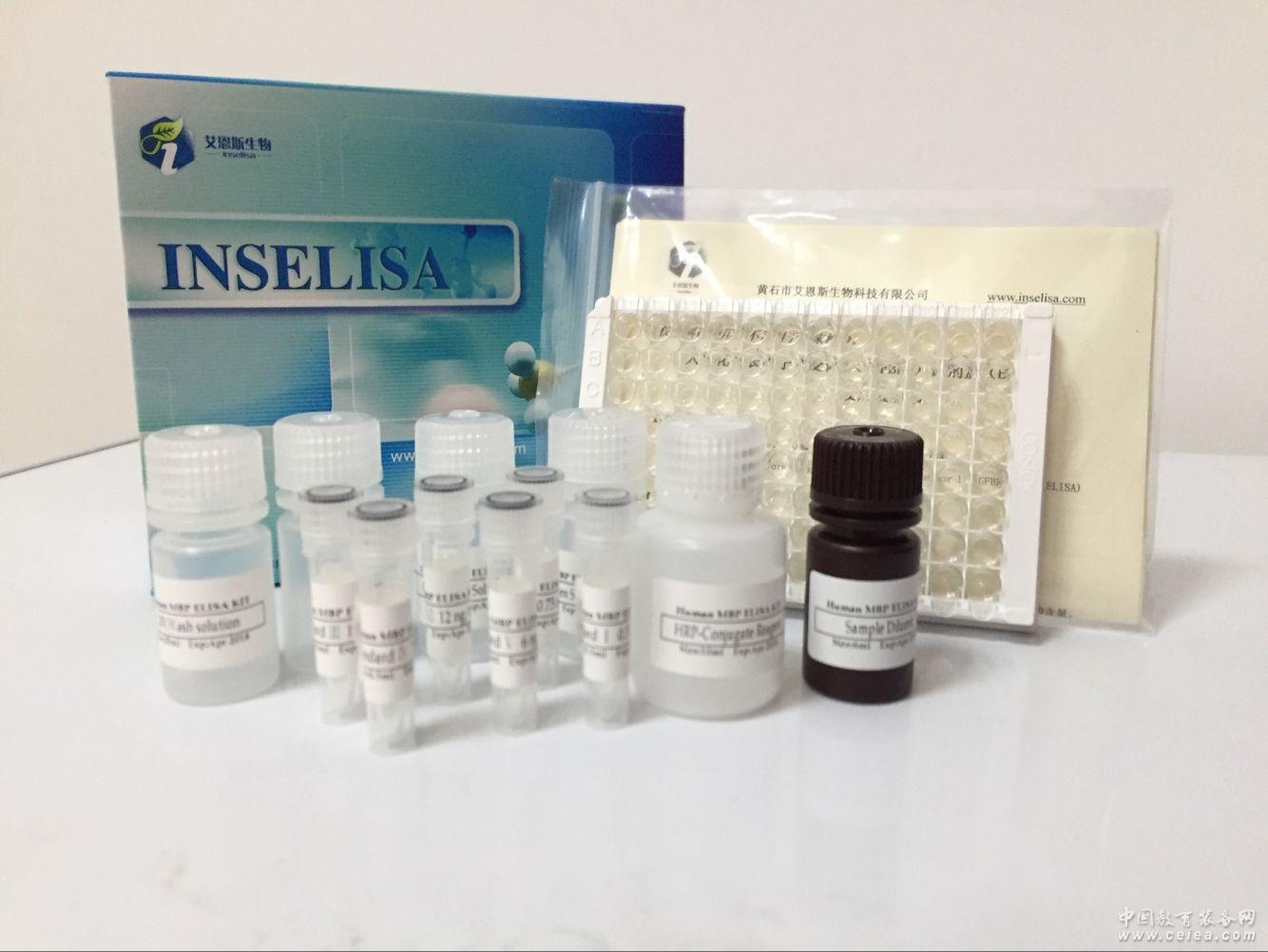 本試劑盒采用雙抗體夾心酶聯免疫吸附試驗(ELISA)。在預包被抗大鼠5羥色胺(5-HT)抗體(固相抗體)的微孔酶標板中,加入大鼠5羥色胺(5-HT)校準品和待測樣本,再加入另一株HRP標記的抗大鼠5羥色胺(5-HT)抗體(酶標抗體),經過溫育與充分洗滌,去除未結合的組分,在微孔板固相表面形成固相抗體-抗原-酶標抗體的夾心復合物。加底物A和B,底物在HRP催化下,產生藍色產物,在終止液(2M 硫酸)作用下,最終轉化為黃色,在酶標儀上測定吸光度(OD值),吸光度(OD值)與待測樣品中大鼠5羥色胺(5-HT)的濃度正相關。擬合校準品曲線,可以計算出樣本中大鼠5羥色胺(5-HT)的濃度。