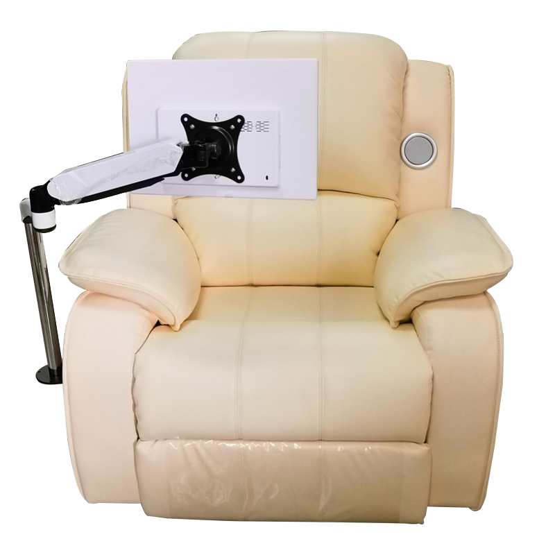 產品詳細介紹1、頭等艙設計開發的進口牛皮座椅1臺 a.產品尺寸:長105CM×寬90CM×高100CM(椅背收起) 長160CM×寬105CM×高80CM(椅背展開) b.產品重量: 凈重:55KG;包裝重量65KG最大承載量:100KG, c. 電 源: 220V(50Hz) d.獨立電動控制系統:音樂椅靠背、腿部電動控制設計,靠背100度-180度,腿部90度-180度任意調節。 e.播音系統:內置專業級 別藍牙音樂播放器,一個低音喇叭兩個高音喇叭,支持無線藍牙連接播放音樂,支持優盤sd卡外置播放音樂,支持12V1A對外供電。 2、數字播放系統:15寸觸控播放器 1個:無線遙控器,支持音樂、心理圖片、心理文章、心理電影等多種格式文件(內置心理視聽資料含心理音樂:放松類、激揚類、冥想類、腦波共振類、抒發類、振奮類、中醫五行類、自我催眠類等類別,心理圖片:放松圖、錯覺圖,心理視頻:催眠用搖擺鐘視頻、放松訓練教學視頻、經典眩暈視頻;太空遐想視頻,心理電影:3部,心理小常識:txt文字版38篇) 3、音樂治療指導書籍 1本 4、萬向顯示器支架 1個(支持方位調節,便于使用者調節顯示器角度調整到適合自己的位置放置 |