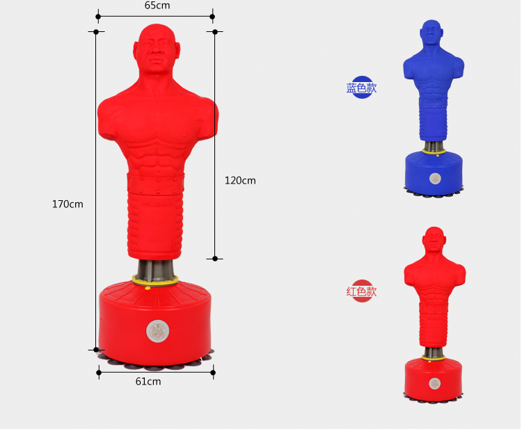 產(chǎn)品詳細(xì)介紹宣泄人高度為175CM。按照成年真人比例一比一開模制造,使用高密度發(fā)泡海綿為填充物,擊打手感柔軟,且不會誤傷來訪者。外層使用天然優(yōu)質(zhì)硅膠覆蓋包裹。 宣泄人底座采用聚乙烯丙塑料材質(zhì),強(qiáng)度高韌性強(qiáng)。注水固定,注水后達(dá)80公斤,直徑為65CM,高度為45CM。顏色:紅色、藍(lán)色 |