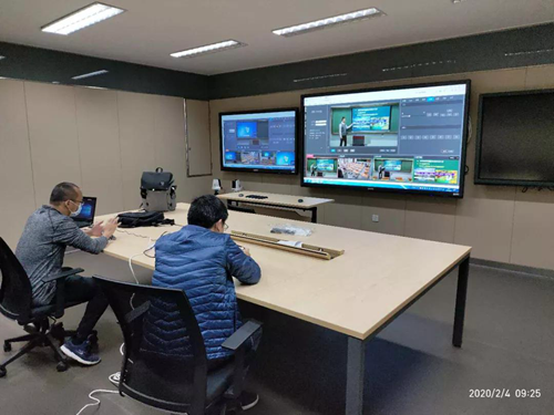 學(xué)校領(lǐng)導(dǎo)在集控中心實時觀看名師直播教學(xué)情況