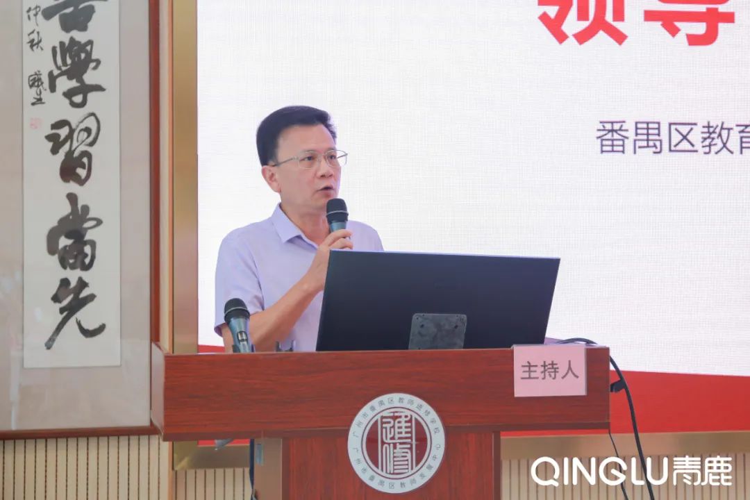 活動由番禺區教師發展中心陳家權老師主持,邀請了華南師范大學教育信息技術學院副院長柯清超教授擔任活動的特邀專家,番禺區教育局二級調研員吳岳冬、校外培訓監管科“雙減”專班負責人曾海文、“雙減”專班專干戴錦霞,番禺區教師發展中心何文捷校長、方小芹副校長、特教部陳海苑主任、教研部張坤熾副主任、教育技術部丘志強副主任,市橋僑聯中學黎艷冰校長,市橋象圣中學徐海軍校長,各教育指導中心、區屬學校分管教學或信息化工作的領導參加了本次活動。