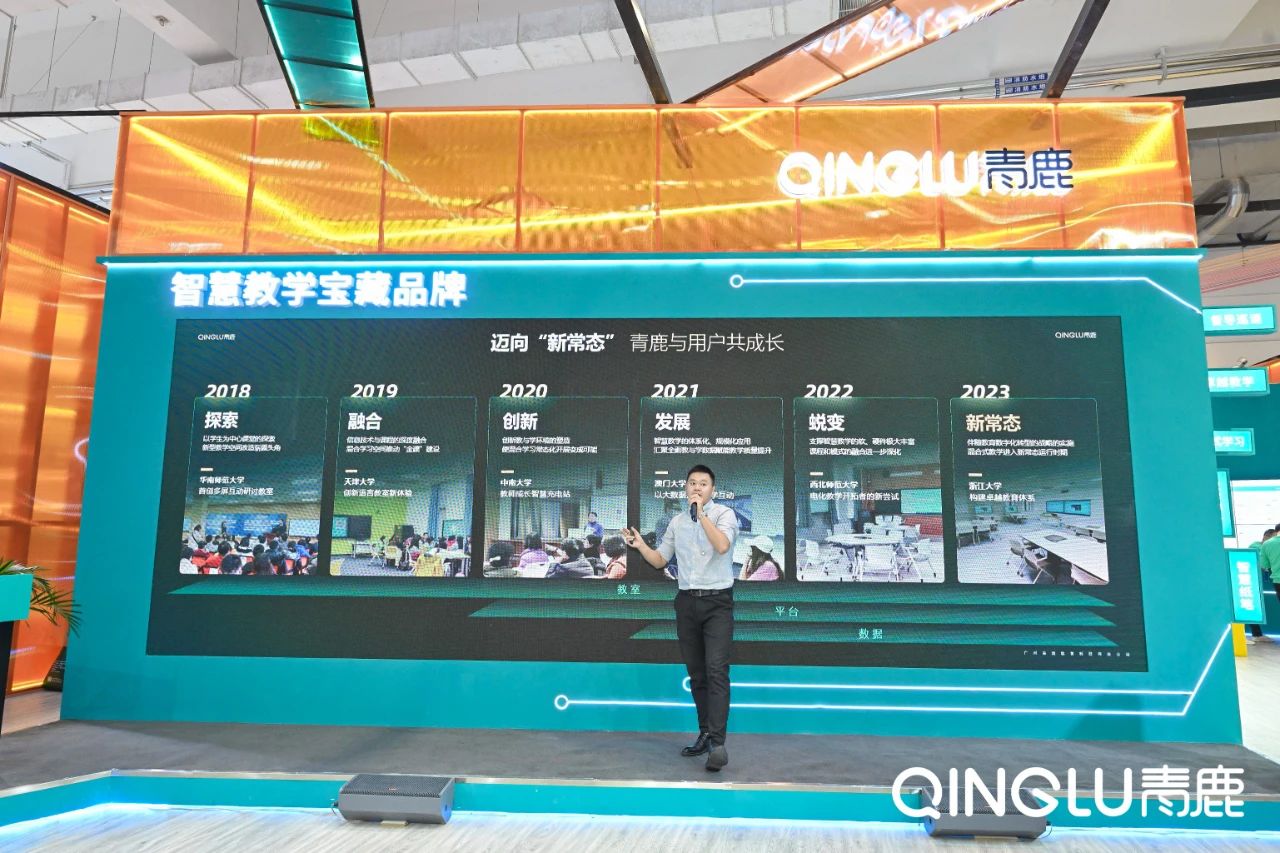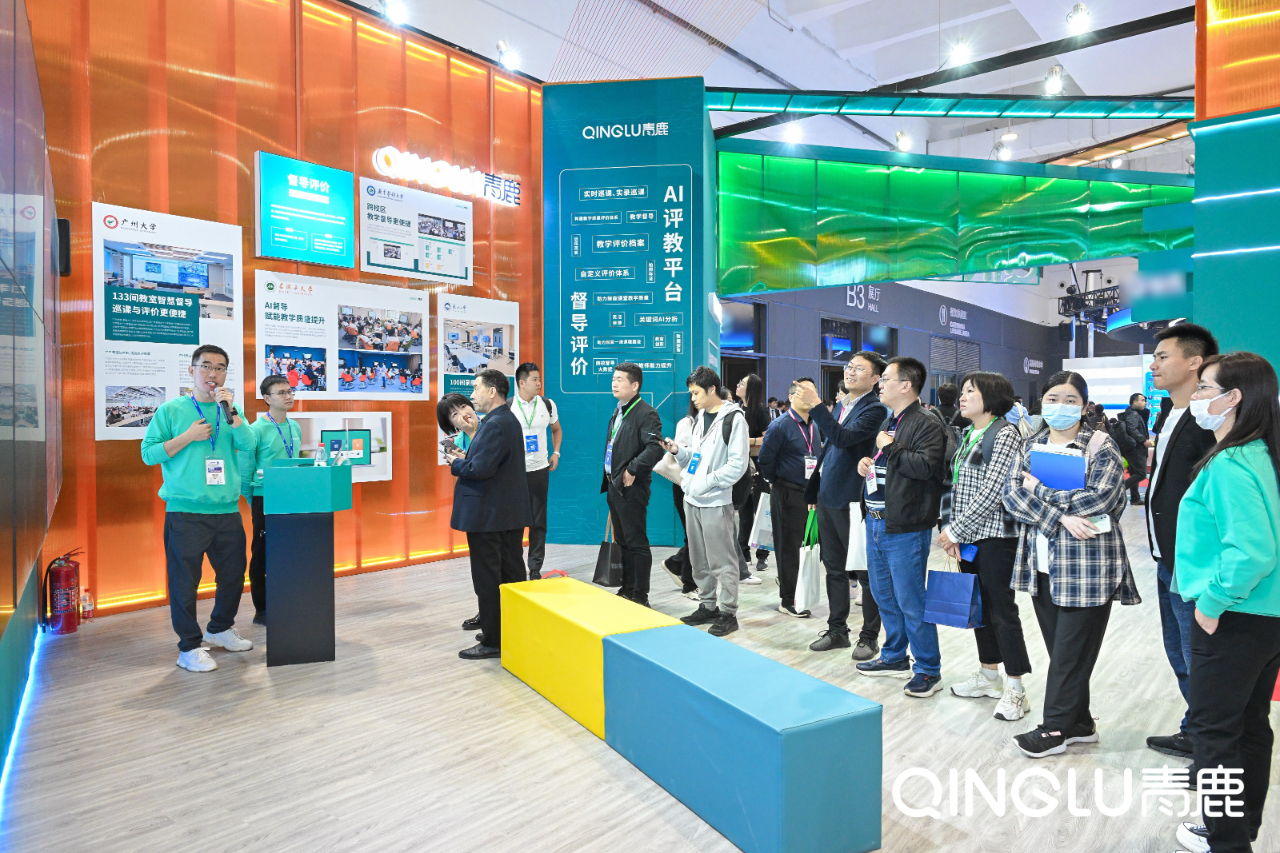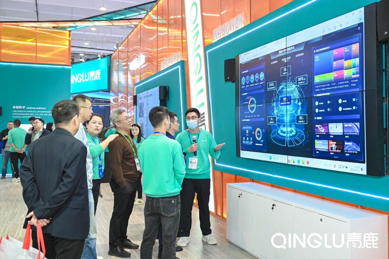 展會現場,青鹿帶來了——“新常態” · 混合式教學解決方案的講解與展示,吸引眾多來賓蒞臨參觀。
