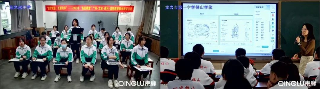 《詩意的棲居——傳統(tǒng)建筑鑒賞》一課以“雙師課堂”的形式進行,由廣州市藝術中學的兩位老師“同時異地”授課,黃妍燊老師在龍巖一中錦山學校,王薪銘老師在廣州市藝術中學,通過視頻直播互動實現(xiàn)同上一節(jié)課。