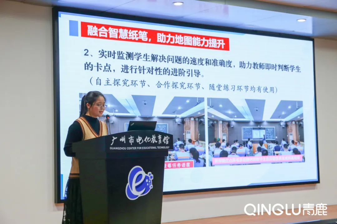 其中,廣州市番禺區(qū)市橋象圣中學(xué)的韋雅晶老師作為獲獎(jiǎng)教師代表,以《智慧紙筆助力地圖能力提升的課堂實(shí)例》為題,對(duì)融合創(chuàng)新應(yīng)用教學(xué)案例項(xiàng)目進(jìn)行分享。