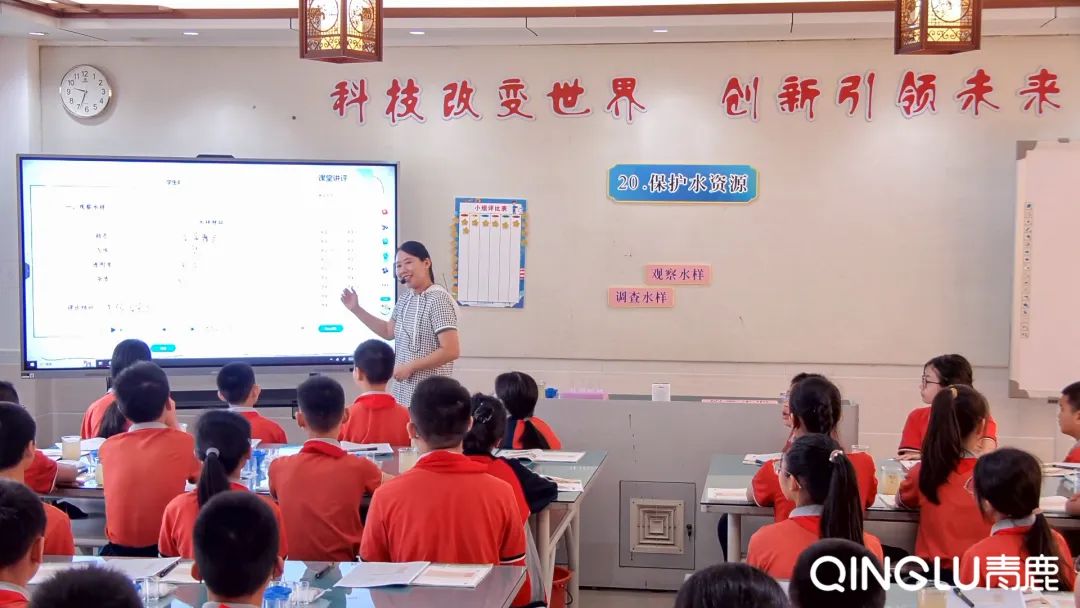 在活動探究時,學生使用青鹿智能筆記錄實驗過程與探究結果,數據實時傳輸至一體機大屏顯示,林老師能及時了解學生們的實驗情況,更有針對性地講解知識點與解答問題。