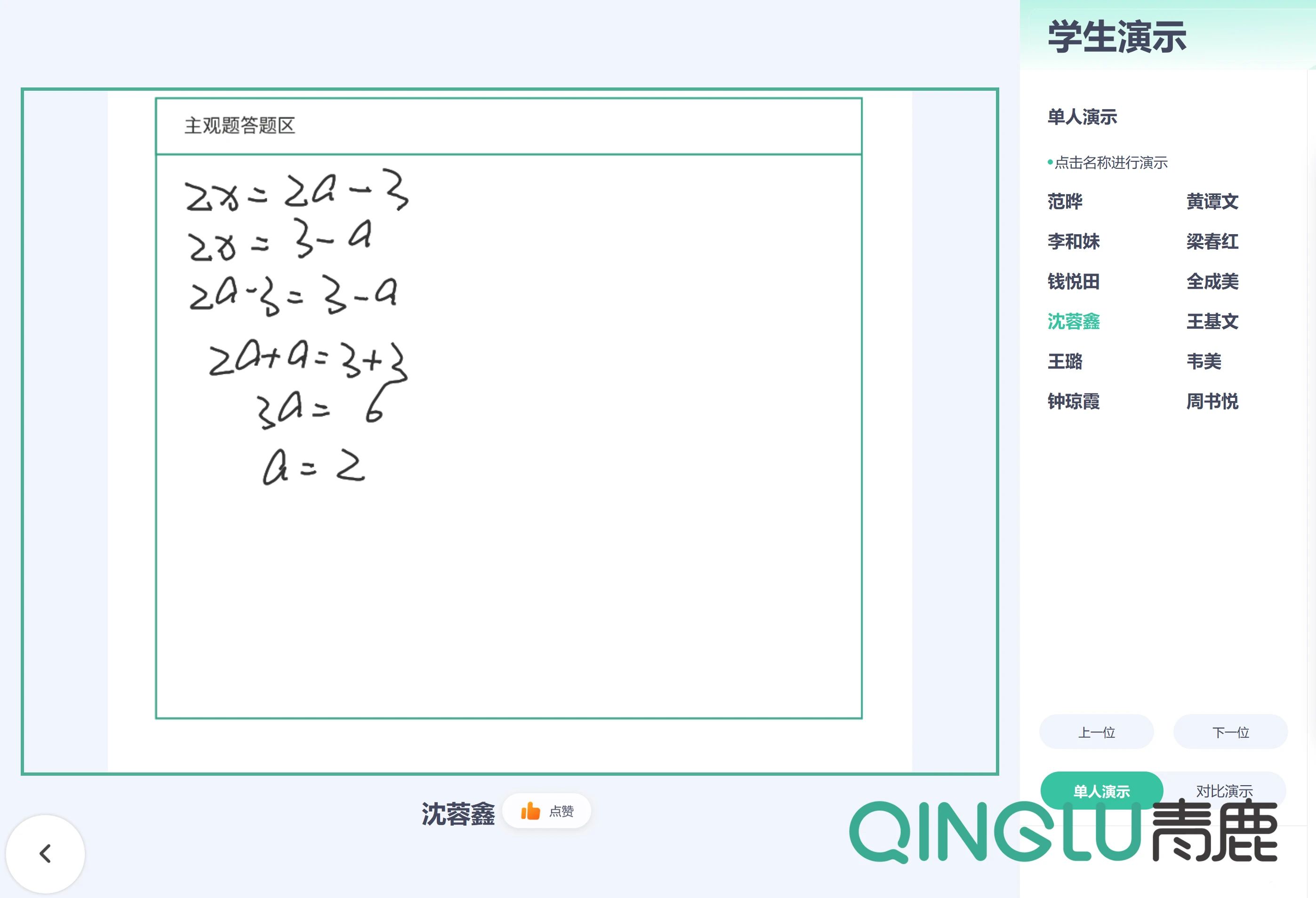 借助青鹿智慧紙筆系統,學生可通過智能筆在紙上書寫來表達自己的觀點,教師在大屏可實時同步顯示該學生的書寫過程,有助于學生觀點清晰明了的表達。
