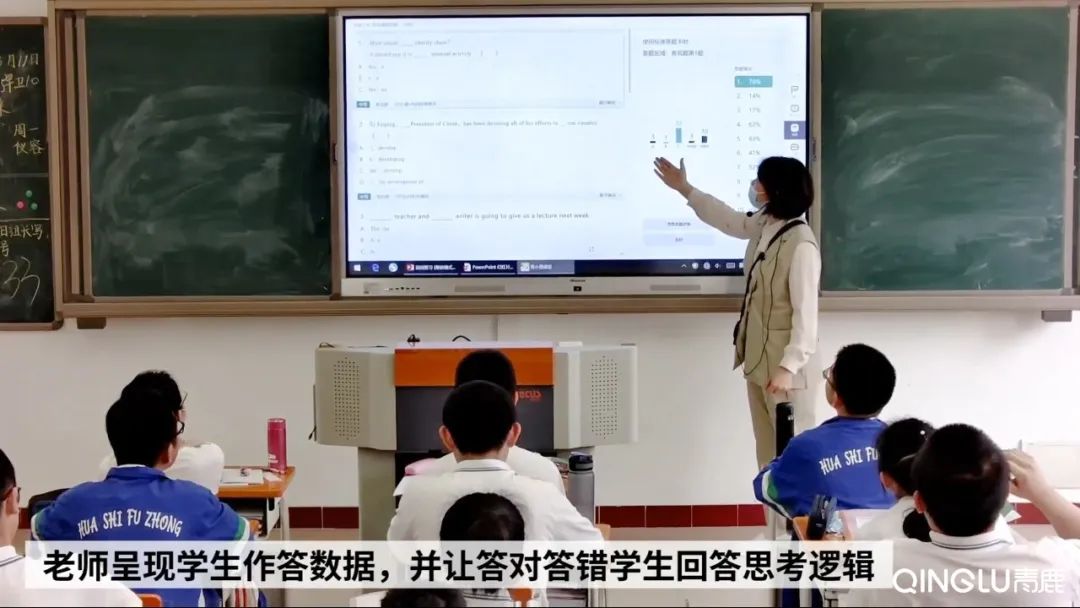 隨堂測驗示例:初中英語課中,老師在講解完“冠詞”的相關(guān)知識與組織學生梳理語法關(guān)系等活動探究后,下發(fā)了10道客觀題檢測,學生使用紙筆完成測驗題,系統(tǒng)實時顯示出每道題的正確率與選項分布,幫助老師和學生快速明確知識掌握情況與依據(jù)學情的反饋講解。