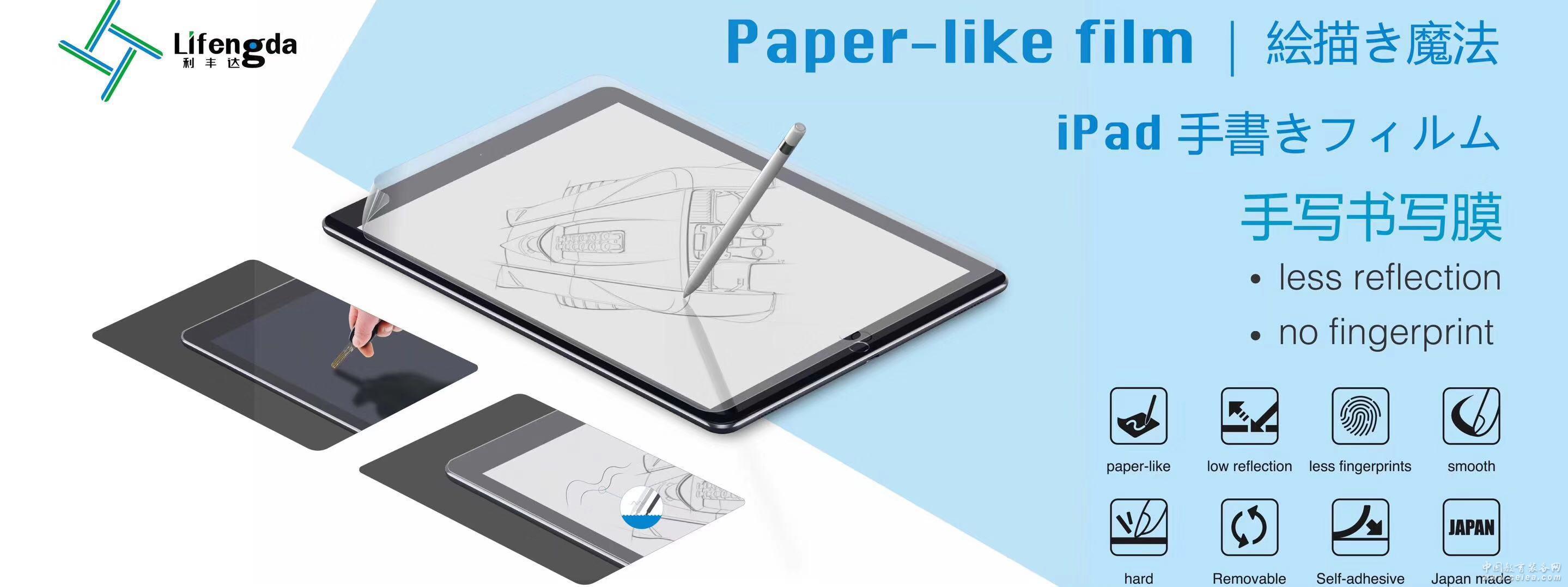 產品詳細介紹手寫繪畫功能屏幕保護膜 專業繪畫師首選產品 手寫筆平板設備專用 功能:達到各類鉛筆,簽字筆在書紙上使用手感,聲音 完全不打滑,并能有效的保護設備屏幕, 適用于ipad系列,wacom系列,微軟系列,等帶筆設備屏幕 利豐達科技詳細參數性能聯絡 13924673418 |