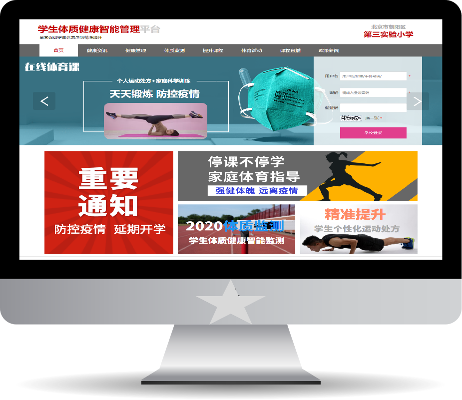 產品詳細介紹 一、產品亮點:【停課不停練】【學校體育空中課堂】【學生體質健康智能管理】【家庭訓練打卡監控】【體育教師自編課程上傳】【學生體質健康檔案及精準分析報告】【體育成績提升計劃】【學生健康科學防控】【體育教學】【智慧校園之智慧體育】【體育教學】【疫情防控平臺】【近視防控】 二、系統組成:學校線上智能健康管理平臺(WEB)+教師管理端(小程序)+學生家長端(小程序) 三、平臺軟件介紹: 針對目前新冠肺炎疫情,【智動云體】平臺為學校提供體育課程的“停課不停學”線上定制方案,滿足家庭體育健康和管理需求。 【智動云體】是國內領先的青少年體質健康精準提升平臺;平臺通過“人工智能+健康大數據+云計算” 技術體系為依托,以“青少年體質健康精準提升”為目標,為各級學校和教育管理部門提供滿足青少年體質健康發展需求的“精準監測、精準分析、精準提升、精準預防”智能運動健康解決方案;能夠迅速為學校和教育部門搭建線上體育及健康平臺,滿足學校對學生體育運動監管及健康風險防控需求。 平臺為學校和教育管理部門提供精準數據分析服務和體育內容服務,能夠給學校管理者、各個年(班)級和各位老師提供精準的數據分析報告;也能夠滿足上級管理部門針對學生體質健康數據的要求;同時通過“家校互通”的方式,為每個學生提供精準的數據分析報告和運動處方,滿足學生體質健康提升需求。 平臺擁有600+課程體系,依托百萬青少年健康大數據生成精準算法,針對學生體質健康問題及中考和高考體育考試薄弱項、學生興趣體育項目等需求,給出一對一科學訓練及精準提升解決方案; 【智動云體】線上體育與健康管理平臺,是學校的智能管理工具,是教師的體育教學與健康監控助手,是學生個人的虛擬運動教練。 平臺為學校和各級教委提供快速定制化解決方案。