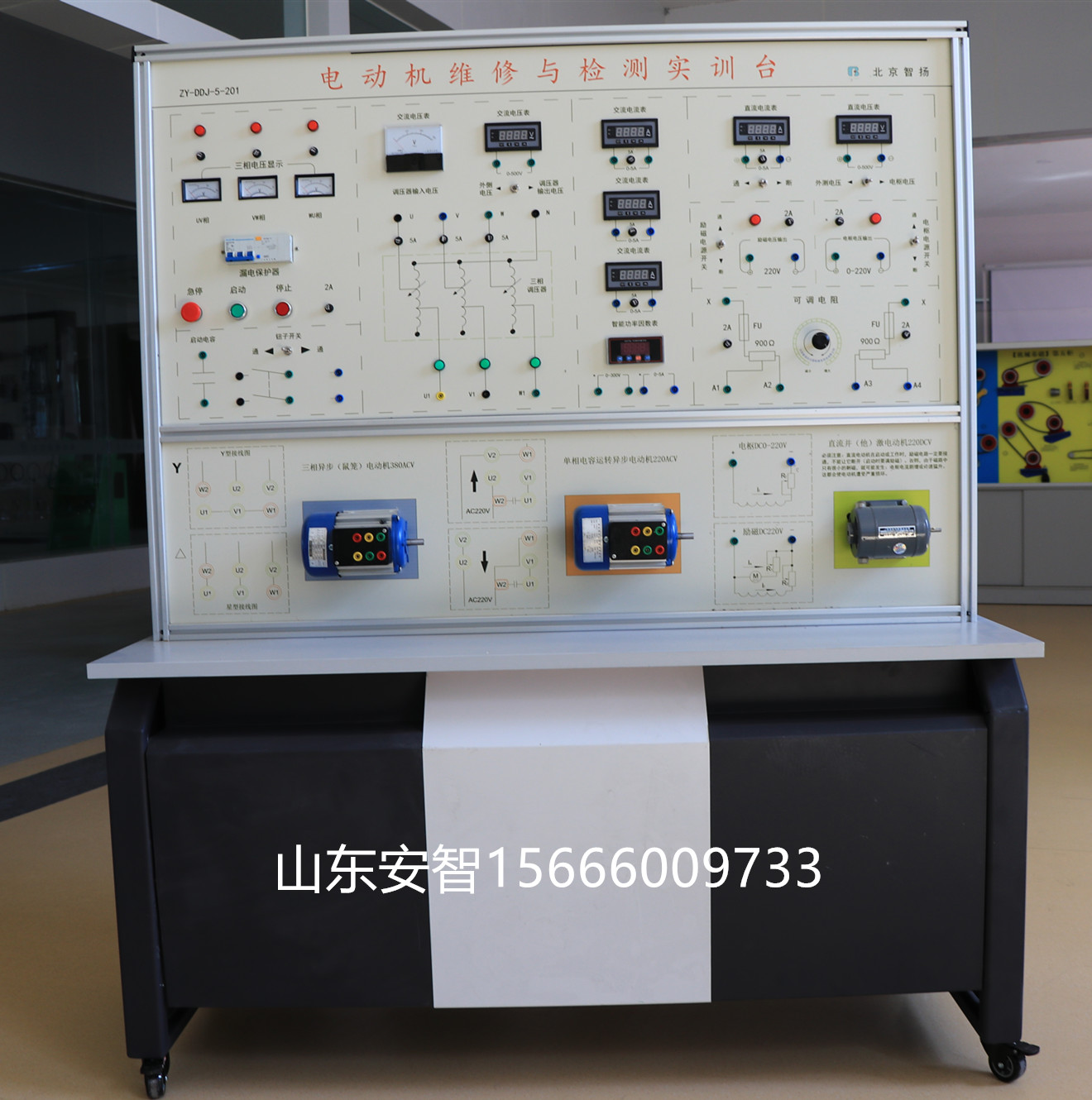 產品詳細介紹山東安智專業打造汽車新能源實訓室。咨詢電話趙經理:15666009733(微信同步) 一、產品介紹 電機維修檢測實訓臺是單相電容運轉異步電動機和三相鼠籠異步電動機、直流并激電動機的檢測維修和電機出廠檢測的實訓平臺,可對學生在電機檢修方面進行技能訓練。適用于機電一體化、自動化及相關電氣專業的《電機制造工藝》《電機維修》《電機測試》等課程。 二、技術參數 1、輸入電壓:三相四線制~380V±10% 50Hz 2、工作環境:環境溫度范圍為-5~+40℃ 相對溫度<85%(25℃) 3、裝置容量:<1.5KVA 4、外形尺寸:1300mm×750mm×1300mm 三、電機變壓器維修及檢測實訓裝置的配備 主控功能板 (1)三相四線電源輸入,經漏電保護器和總開關,由接觸器通過起、停按鈕進行操作,并設有急停控制按鈕。 (2)控制屏面板上設有指針式交流電壓表三只,觀測三相電網電壓。 (3)三相可調交流電源,通過1.5KVA三相同軸自耦調壓器進行調壓,可輸出三相0~450V及單相0~250V可調電壓。 (4)直流電源部分: 220V/0.5A直流電源一組,還有短路保護功能。 0~250V可調直流高壓電源一組,帶有過壓保護及短路保護功能。 、 四、電機變壓器維修及檢測實訓裝置實訓項目 (一)單相變壓器修理及測試 1.直流并激電動機拆除前的數據記錄與計算 2.直流并激電動機的拆除 3.直流并激電動機繞制 4.直流并激電動機的組裝 5.絕緣電阻測試 6.直流電阻測試 7.直流并激電動機空載 8.直流并激電動機短路 (二)單相電動機修理及測試 1.單相電容運轉電動機拆除前的數據記錄與計算 2.單相異步電動機的拆除 3.單相電動機繞組繞制 4.單相變壓器的組裝 5.絕緣電阻測試 6.直流電阻測試 7.單相異步電動機空載 8.單相異步電動機短路 (三)180W三相鼠籠式異步電動機的修理及測試 1.三相鼠籠式異步電動機拆除前的數據記錄與計算 2.三相鼠籠式異步電動機的拆除 3.三相鼠籠式異步電動機繞組繞制 4.三相鼠籠式異步電動機組裝 5.絕緣電阻測試 6.直流電阻測試 7.三相鼠籠式異步電動機繞組首末端判別 8.三相鼠籠式異步電動機空載 9.三相鼠籠式異步電動機短路 |
