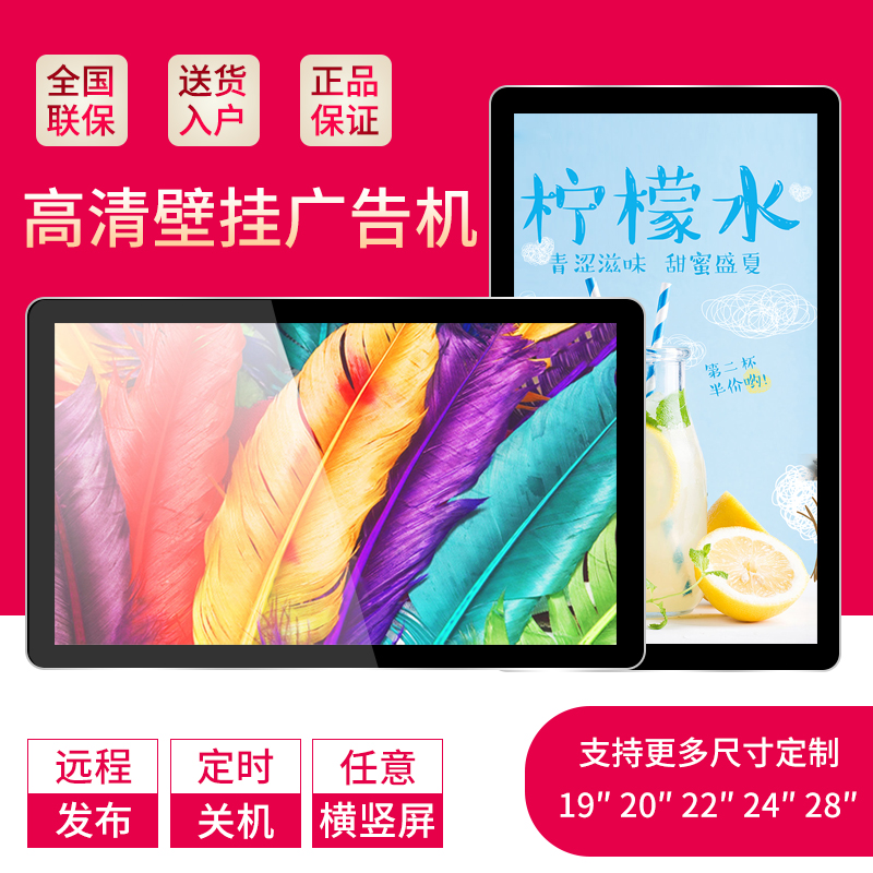 產(chǎn)品詳細(xì)介紹1)單機(jī)、網(wǎng)絡(luò)版兩種可選,支持分屏播放 2)單機(jī)插入U盤,直接拷貝,自動播放 3)網(wǎng)絡(luò)版可連接wifi,支持遠(yuǎn)程發(fā)布 4)壁掛機(jī)有蘋果款(在奶茶店,飯店等地常見)分眾款(在電梯常見)超窄金邊款,觸摸款