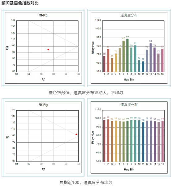 顯色指數Ra>96,色度變化分布均勻,色彩還原力強,接近自然光。