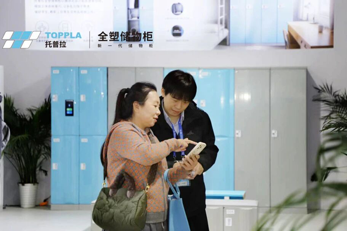 托普拉還將智能元素融入儲物柜設計,契合展會 “AI 引領高質量發展” 的主題,此次展位上多款智能儲物柜亮相,不僅支持校園卡刷卡、人臉識別等多種開啟模式,后臺還能實時記錄使用情況,方便老師管理。
