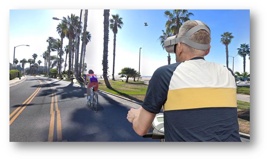 VR運(yùn)動(dòng)訓(xùn)練系統(tǒng)利用虛擬現(xiàn)實(shí)技術(shù)創(chuàng)造出智能化的三維運(yùn)動(dòng)環(huán)境,并且可鏈接多種運(yùn)動(dòng)器械包括動(dòng)感單車、跑步機(jī)、劃船機(jī)、滑雪機(jī)等,提供安全的擬真運(yùn)動(dòng)情景,融入積極交互活動(dòng),有效帶動(dòng)用戶的積極性,從而促進(jìn)身心健康。