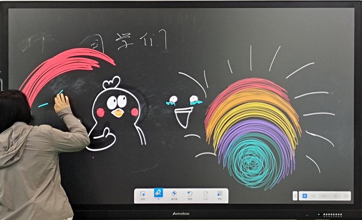 智能交互教學(xué)一體機(jī)的懸浮球快捷鍵等簡(jiǎn)易操作方式及邊界的交互功能極大地幫助老師提升了課堂效率,輔助老師更好地完成教學(xué)目標(biāo),讓老師輕松“教”;其內(nèi)嵌多款自主研發(fā)軟件,孩子可在白板上隨意涂鴉、開(kāi)心設(shè)計(jì),各種奇思妙想都能在此刻顯現(xiàn)出來(lái),促進(jìn)孩子想象力、創(chuàng)造力的發(fā)展,培養(yǎng)孩子美感,讓孩子愉快“學(xué)”。