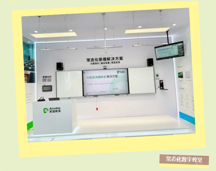 在錄播解決方案展示區(qū),安道全新升級的全場景錄播解決方案被完整展示出來。通過AI技術賦能實現(xiàn)課堂音視頻錄制、直播、畫面追蹤、智能導播等功能,為教師、學校提供更優(yōu)質的授課環(huán)境,打造更高質量的課程視頻資源,為校園數(shù)字化更新提速。
