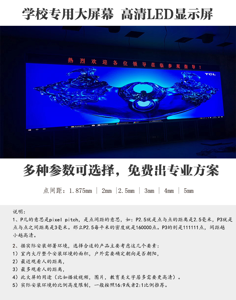 產品詳細介紹威固電子科技為學校提供專業的LED顯示解決方案,室內智慧大禮堂/多功能廳/教室解決方案,采用高清小間距LED顯示屏,可塑造各種創意造型,滿足學校演出、大型會議、學術講解、接待等需求。