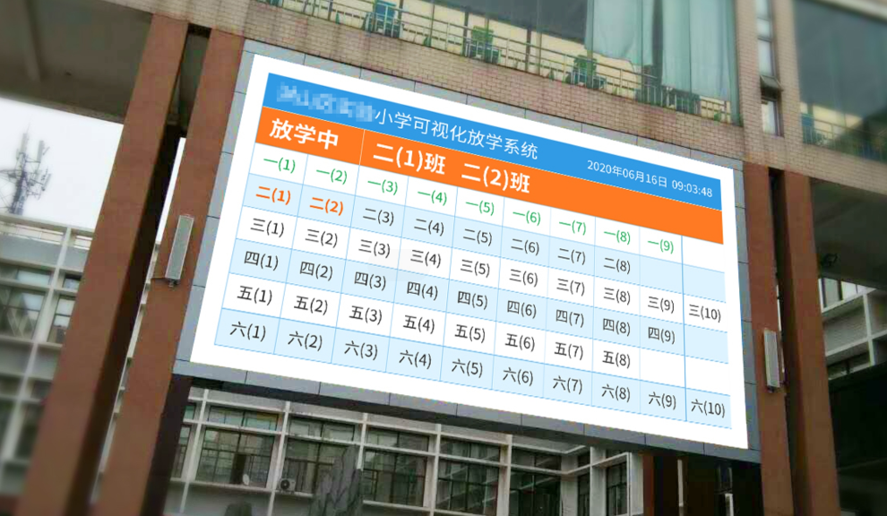 ○班級(jí)放學(xué)信息可視化 通過教育云盒接學(xué)校已有的各類單雙色及彩屏,在放學(xué)時(shí)段,可面向校外家長(zhǎng)在LED大屏上滾動(dòng)播放全校各班級(jí)的實(shí)時(shí)放學(xué)信息;