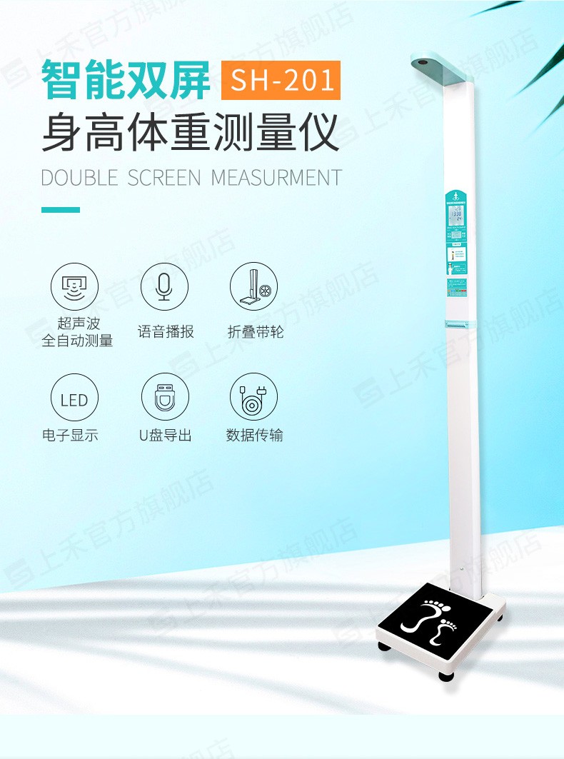 產(chǎn)品詳細(xì)介紹 參數(shù):*超聲波無接觸測量身高、潔凈、衛(wèi)生,測量速度快,測量精度高,外觀豪華上檔次; *數(shù)據(jù)輸出格式:提供RS232接口,并提供飲食健康建議,方便用戶關(guān)注體重對健康的影響; *自檢測功能:具有開機(jī)自檢功能,自動檢測身高和體重是否連接正常,如有異常并自動平判定異常原因; 體型:自動計算BMI指數(shù),并判斷BMI指數(shù)范圍; 體重測量方式:精密平衡梁電阻應(yīng)變式壓力傳感器稱重 身高測量方式:超聲波測量技術(shù)(采用高精度超聲波傳感器并實現(xiàn)溫度補(bǔ)償功能)。 *測高范圍:20-210cm, 鑒定精度:±0.5cm 分度值:0.5cm或0.1cm可調(diào) *稱重范圍:2.0-500KG,鑒定精度:±0.1kg 分度值:0.1kg或0.01kg可調(diào) 測重傳感器:高精度度、高靈敏、高性能精密平衡梁式壓力傳感器; BMI:正常范圍19-24.9,采用最新的WHO標(biāo)準(zhǔn)或中國九城市標(biāo)準(zhǔn),自動計算BMI數(shù)值; BMI精度:可根據(jù)客戶要求自由設(shè)置BMI精度0.1或0.01可調(diào) *雙液晶屏顯示:*采用兩個高清液晶屏顯示: 5寸高清液晶屏待機(jī)狀態(tài)下顯示當(dāng)前日期、時間和溫度,測量完畢后屏幕顯示身高、體重、BMI的測量結(jié)果以及體型偏胖、正常還是偏瘦。 3寸液晶屏上待機(jī)狀態(tài)下顯示用戶單位名稱(比如:某某省人民醫(yī)院)和歡迎語;測量狀態(tài)下顯示測量姿勢提示語,測量完畢后顯示理想體重、健康體重范圍以及飲食建議,另外還可以掃屏幕上的二維碼,測量結(jié)果直接發(fā)送到用戶手機(jī)上(選配)。 大字體超高清顯示,非常方便醫(yī)護(hù)人員查看測量結(jié)果 。 *自動語音播報:清晰語音報出測量數(shù)值并且客戶可以根據(jù)使用情況設(shè)置提示語音。 *數(shù)據(jù)輸出:提供RS232接口(標(biāo)配),方便連接電腦;也可以支持藍(lán)牙模塊(此功能為選配) *測量速度:快速測量600次/小時。 機(jī)身可折疊:折疊后高度為1.2米方便運輸和移動 電源:采用AC100V-240V電源,輸入寬電壓適合電壓不穩(wěn)定地區(qū)。 消耗功率:待機(jī)10W,工作時平均15W。 工作環(huán)境:溫度:-10℃至+40℃, 濕度:20%-85%PH。 推薦使用:醫(yī)院、社區(qū)服務(wù)站、疾控中心、體檢中心、養(yǎng)老中心,企事業(yè)單位等部門和單位;