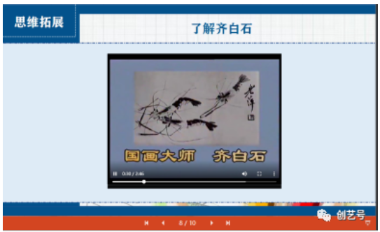 基于知識建構(gòu)理論,構(gòu)造美育創(chuàng)新教學(xué)三步法:知識建構(gòu)、思維拓展和創(chuàng)意實踐。知識建構(gòu):提取教材中的知識點,通過生活場景引入,搭建起學(xué)生新舊知識的橋梁,實現(xiàn)新知識的建構(gòu)。配合引導(dǎo)性提問,帶動學(xué)生主動獲取課程的知識。其中包括美術(shù)知識、美術(shù)技法、藝術(shù)流派、名人名作、創(chuàng)作特點等。