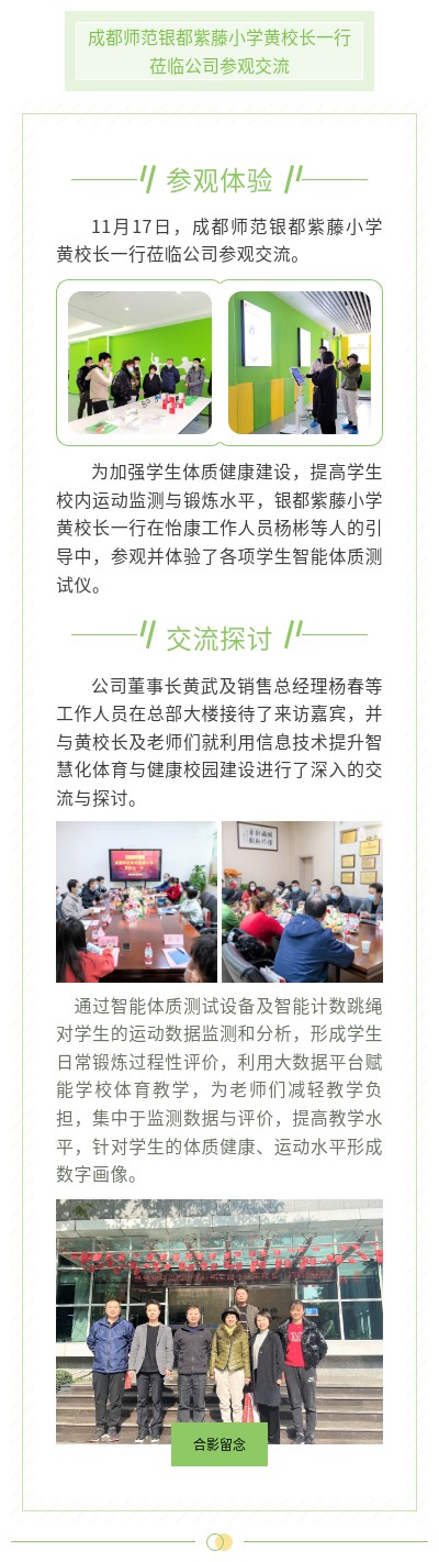 成都師范銀都紫藤小學黃校長一行蒞臨公司參觀交流
