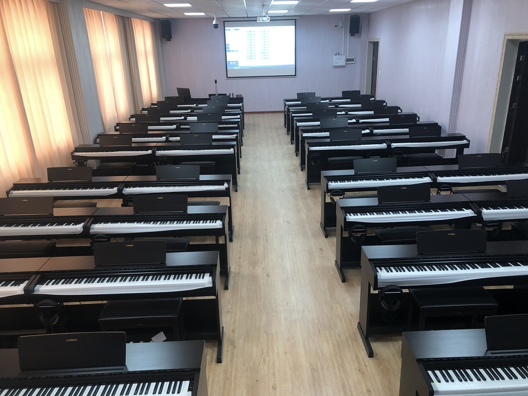 武漢生物工程學院數字化音樂鍵盤實訓室使用北京智泰威盈科技有限公司配備的智慧云音樂教室教學系統軟件、電子琴、高拍儀等常用設備。