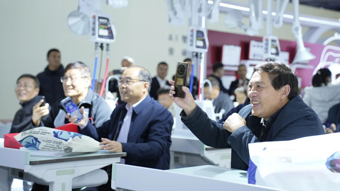 “搖一搖贏好禮”:現場觀眾只需打開手機微信掃碼,進入宏博教裝專屬活動頁面,即可參與互動。隨著主持人一聲令下,全場齊搖手機的畫面蔚為壯觀,大屏幕上實時滾動的排名更是引發陣陣歡呼。最快速度的參與者成功將大獎收入囊中。