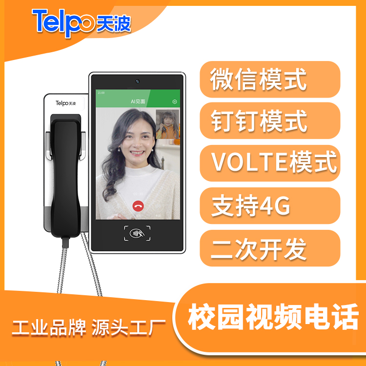 產品詳細介紹廣東天波“校園視頻親情電話V300”是一款融合音視頻通話的公用智能音視頻終端。外觀簡潔大方,搭載Android 9.0系統,配置10英寸1280*800多點觸控IPS電容屏和200萬像素的高清攝像頭,支持高清視頻通話,支持微信、釘釘、VOIP、Volte多種通話模式,家長還可以通過小程序留言給學生。校園視頻親情電話是學生與家長、企業員工與家人等面對面的音視頻溝通的優質選擇。