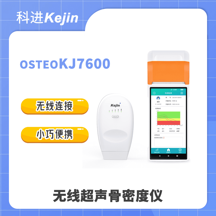 OSTEOKJ7600無線超聲骨密度儀是南京科進實業有限公司推出的一款用于各年齡段橈骨部位骨密度測量的專利產品(專利號: ZL201820676780.5)產品美觀小巧,只需要配合手機或平板電腦就可使用。
